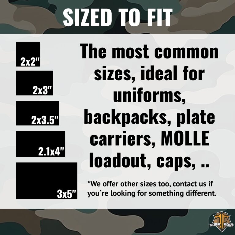 - size 2″x3″ >> suitable for: baseball caps, operator caps, tactical hats, notch hats, etc, when a 2″x3.5″ patch is too long